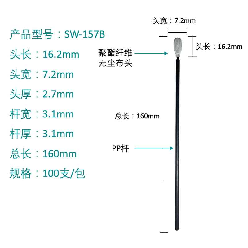 Handtaget ger struktur och bestämmer kemikalieresistens. Handtag av polypropen är kostnadseffektiva och resistenta mot många kemikalier, vilket gör dem lämpliga för allmän rengöring. För tillämpningar som involverar starka lösningsmedel eller extrema temperaturer, a Dacron-pinne med hög renhet för rengöring av medicinsk utrustning kan kräva ett mer inert handtag som gjuten polypropen (PP) eller till och med ett glasfyllt handtag för extra styvhet. Valet påverkar direkt pinnens hållbarhet och lämplighet för uppgiften. Till exempel vid utvärdering dacron vs skumservetter för precisionsrengöring , måste man tänka på att även om skum är utmärkt för plana ytor, är Dacron på ett robust handtag överlägset för att applicera tryck i springor.